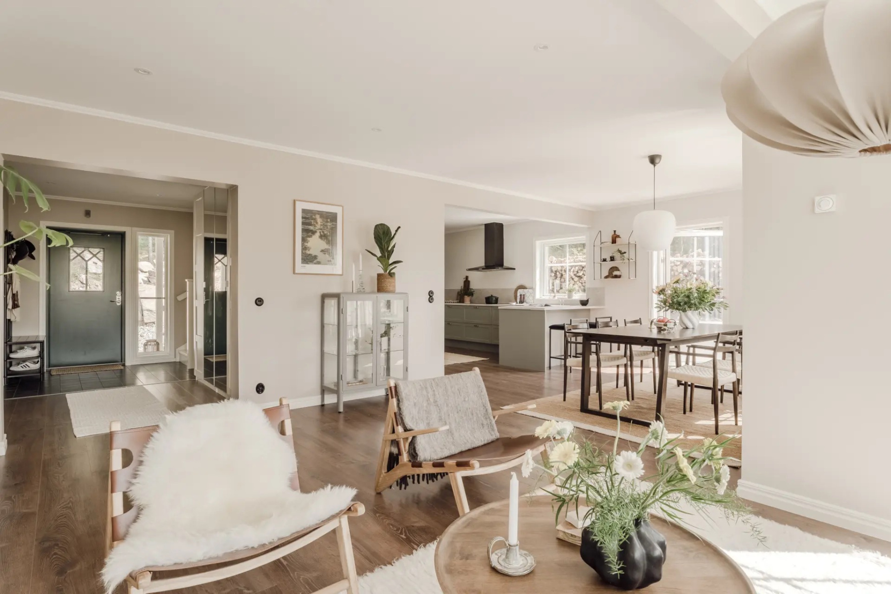 Denna välplanerade villa kombinerar ett lugnt och naturskönt läge med noggrant utvalda material, modern komfort och en flexibel planlösning. Vattenburen golvvärme på båda våningsplanen ger ett behagligt inomhusklimat året runt och eliminerar behovet av radiatorer – vilket ger ett stilrent uttryck och mer frihet vid möblering.